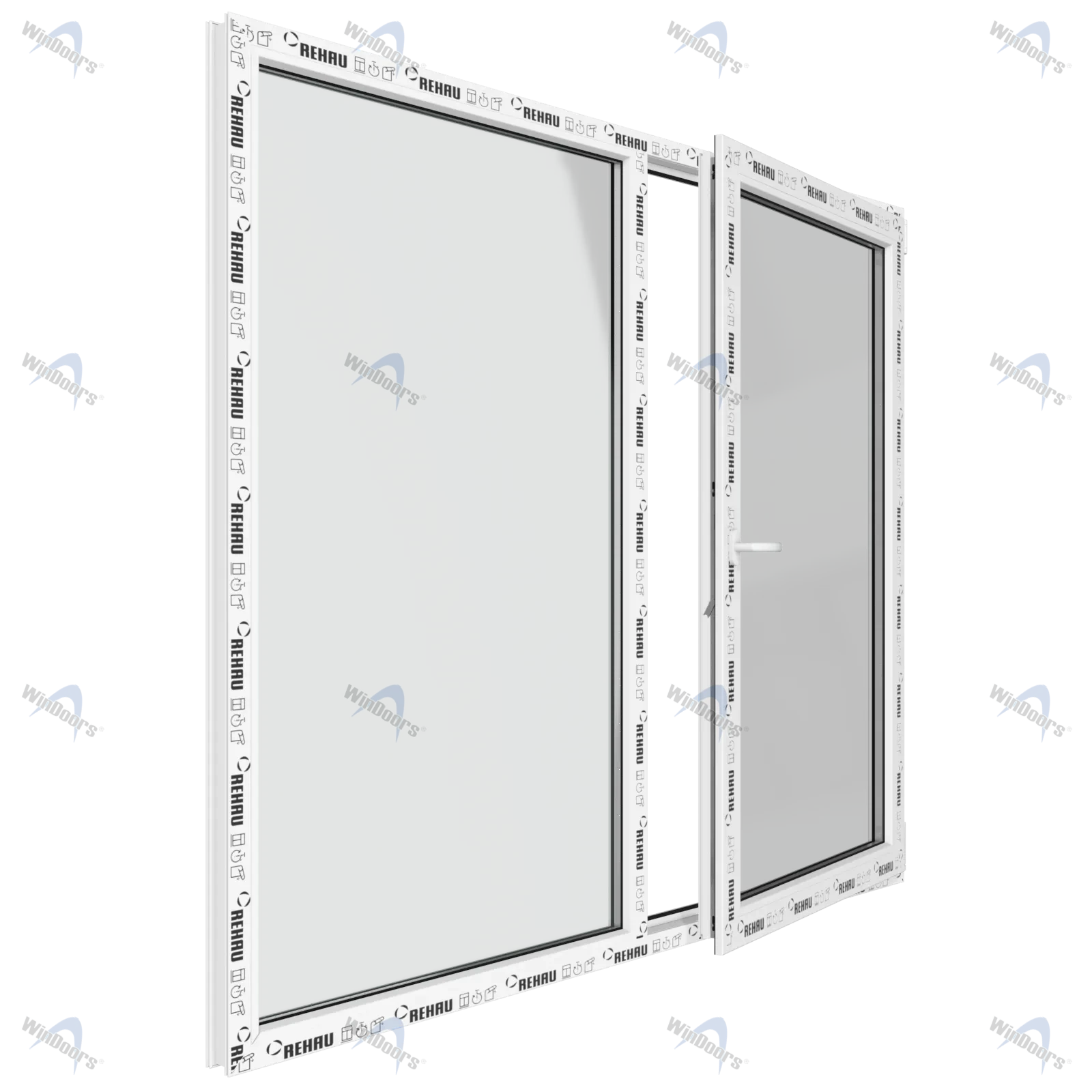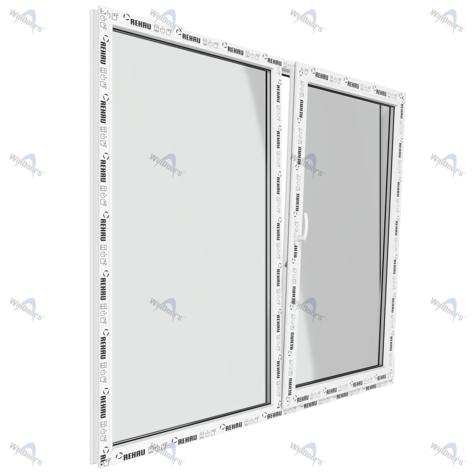 Окно 1450 х 1410 мм, REHAU BLITZ (Фурнитура UPT), двухстворчатое, поворотно-откидное правое, теплопакет DS Neutral