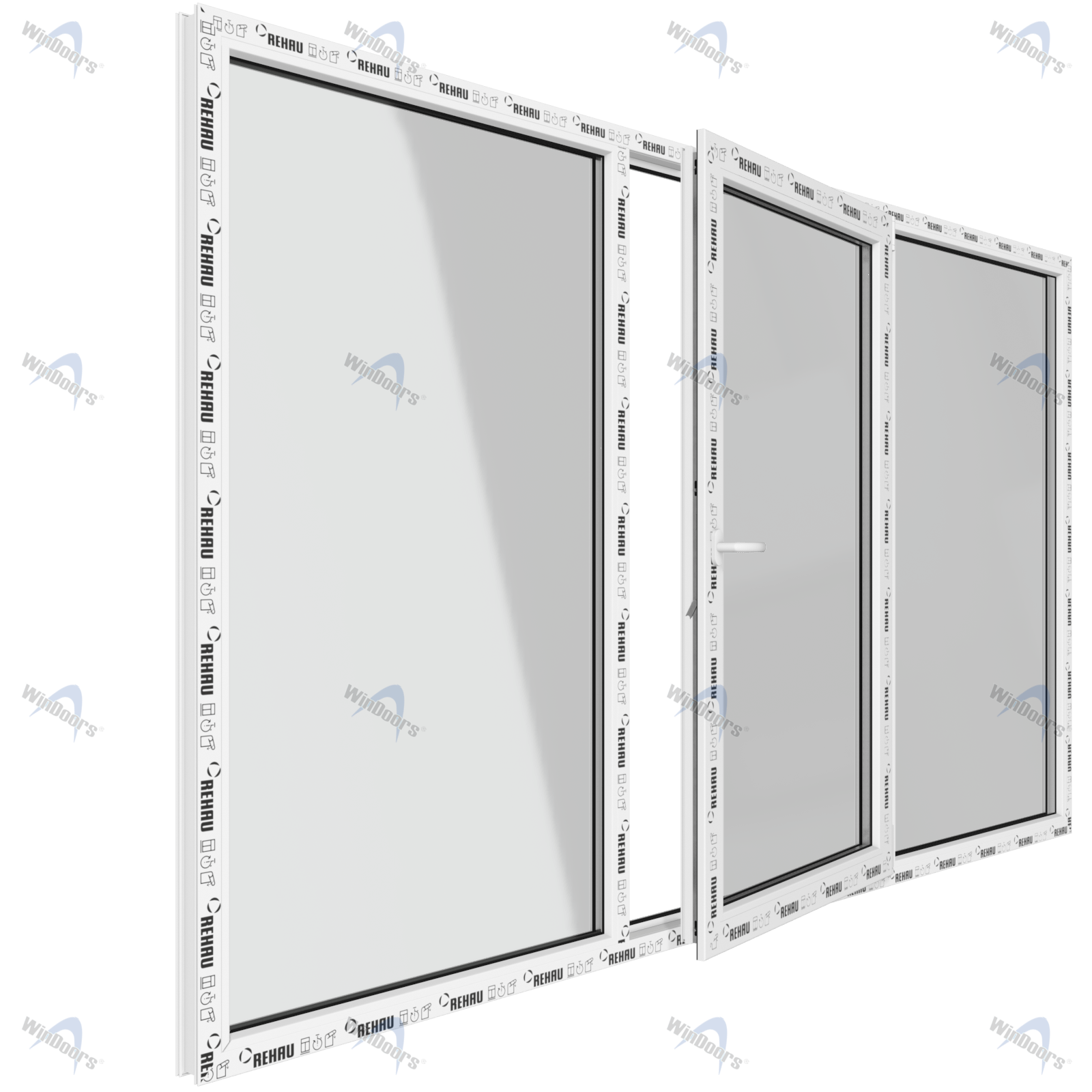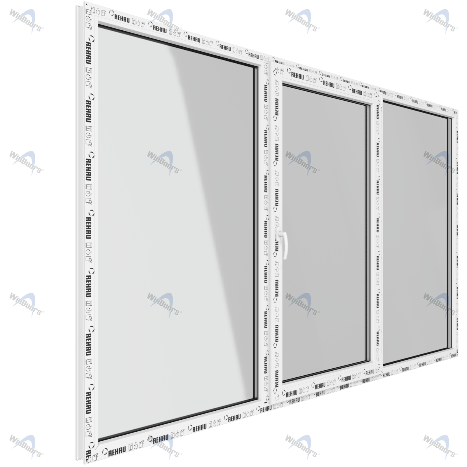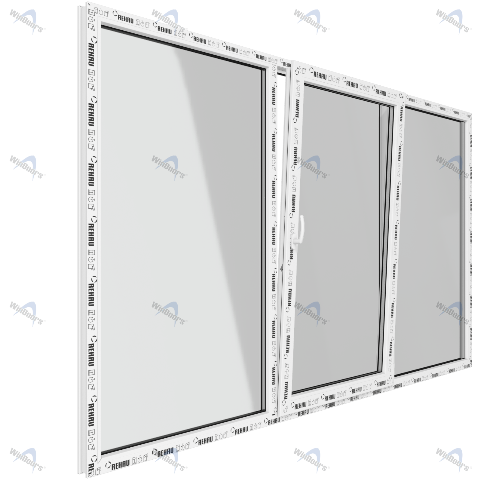 Окно 2150 х 1410 мм, REHAU GRAZIO (Фурнитура UPT), трехстворчатое, поворотно-откидное центральное, теплопакет DS Neutral
